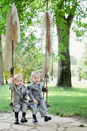 Cherubic little boys dressed up in a spiffy suit are guaranteed to make guests’ hearts melt. But when you then pop them on a swing together, you immediately amplify the cuteness factor by 1000.