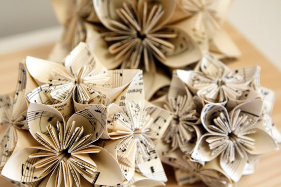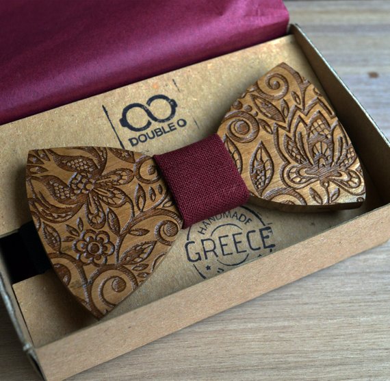 Including paper and wooden bow ties for grooms, paper flowers and textural invitations.