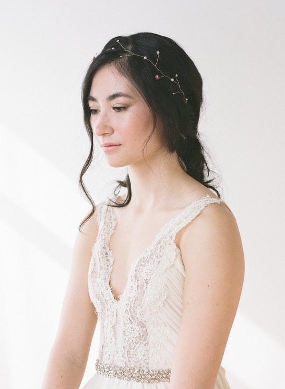 Think headbands, weaving vine accessories, leather crowns, crystal hair pieces, and lace accents. You can find wedding accessories suppliers on Easy Weddings.