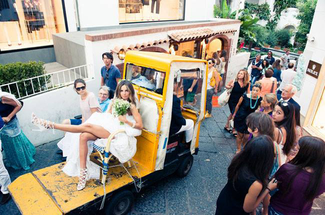 It’s hardly surprising to learn that this rock star-looking wedding was put together by a contributing editor to Vogue magazine and a shoe designer. Every last detail has been thought about but it’s still has a lovely bohemian feel! It took place in Capri, Italy!