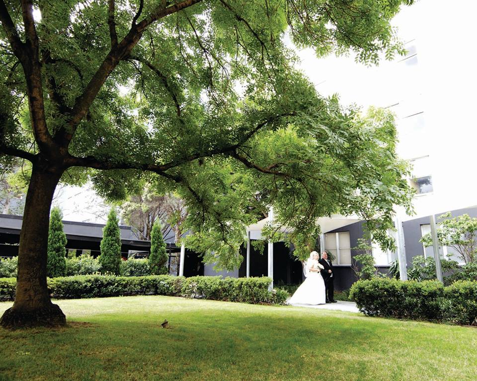Despite being so close to the city, the grounds of Melbourne’s Bell City are filled with greenery and serene gardens reminiscent of far flung country estates. Naturally, they provide the perfect backdrop in which to snap your wedding photos.Bell City’s marquee looks nothing like the temporary marquees you’re probably used to seeing – and it can seat several hundred people, if need be!Classy, and just a little bit cool, the gleaming facade of Melbourne’s Bell City disappears into the skyline on a sunny day.