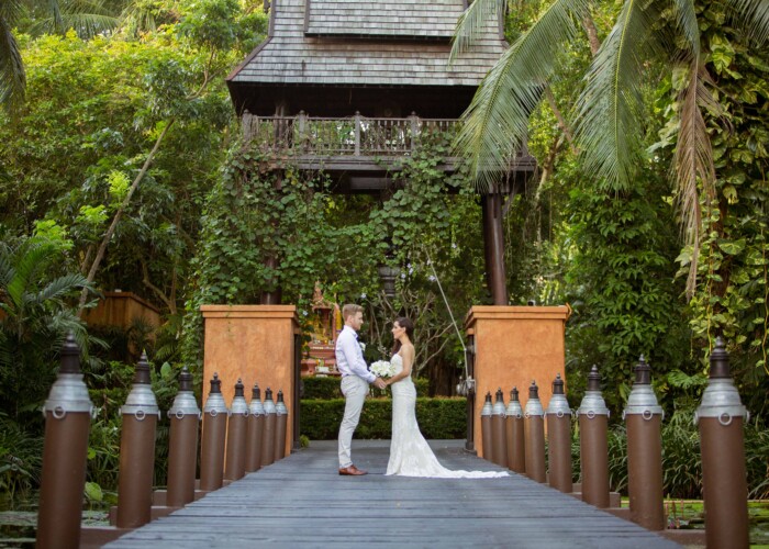 Perched on the tranquil shores of Bophut Beach, Anantara Bophut allows couples access to a garden, jungle, and beach paradise that includes several gorgeous wedding settings. Here, you’ll find an optimal blend of warm island hospitality and contemporary style, setting the scene for a euphoric destination wedding stay.