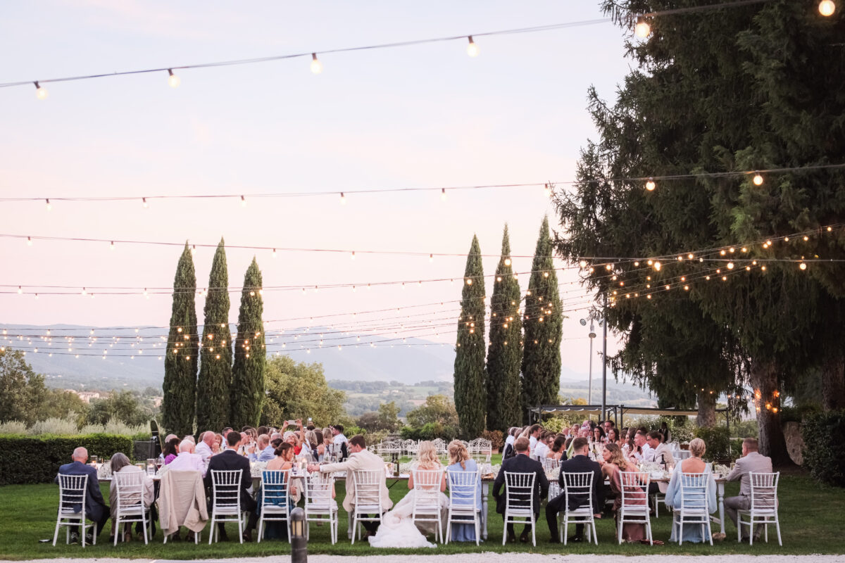 At San Pietro Sopra Le Acque, weddings take on a more relaxed rhythm, shaped by open views and a natural sense of space. Ceremonies can unfold outdoors overlooking the Umbrian countryside or within the resort’s interiors, before guests gather for an aperitif that leads seamlessly into the evening. The transition between each part of the day feels unforced, with the in-house team guiding the experience so everything flows comfortably from one moment to the next.