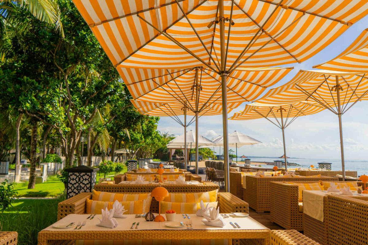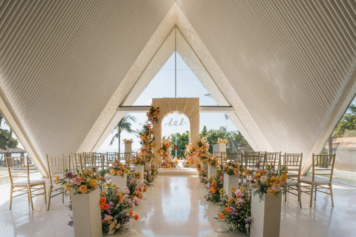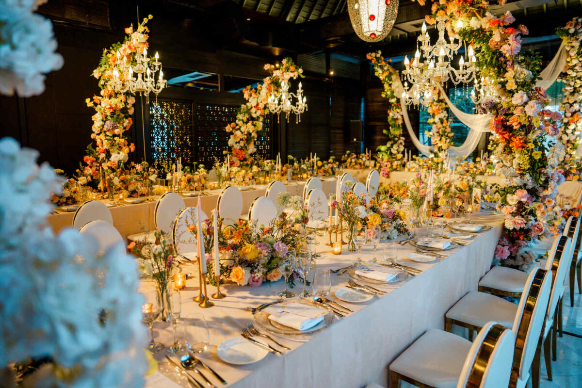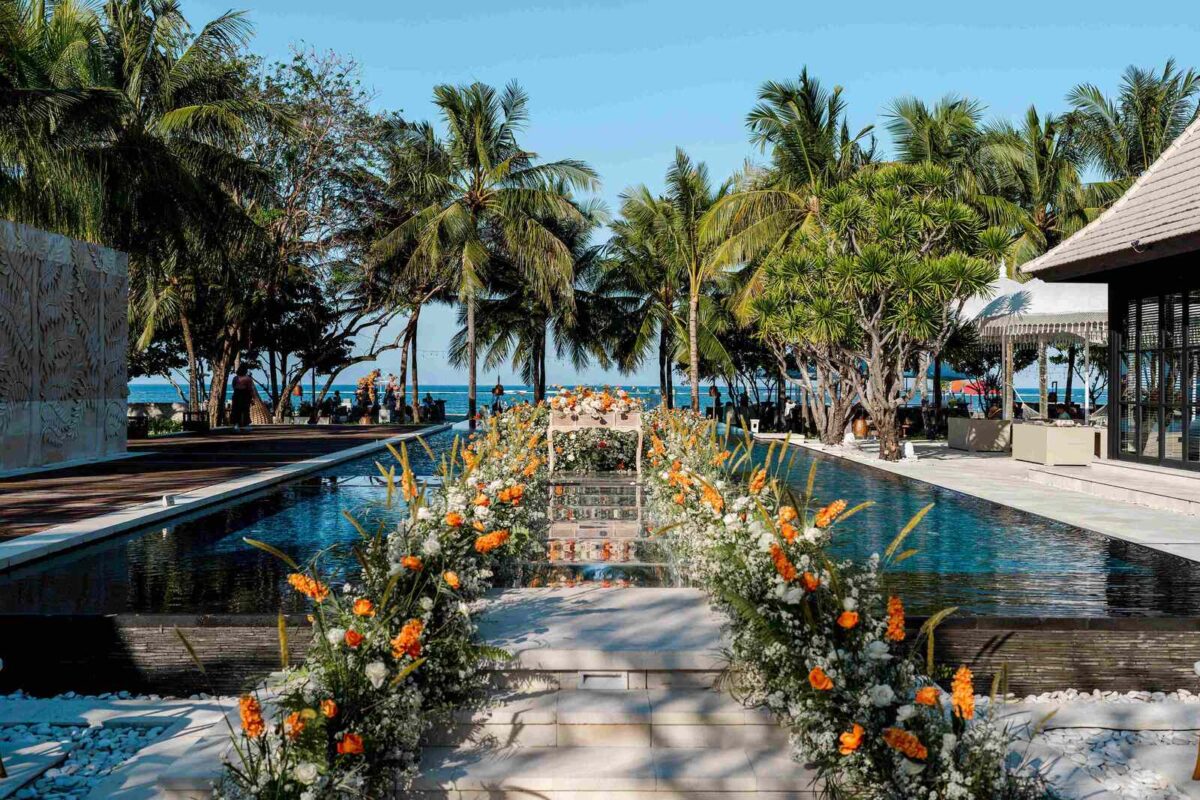 At The Royal Santrian, weddings are shaped by the setting from the moment guests arrive, with the ocean just steps away and the villa grounds creating a sense of privacy throughout. Ceremonies can take place at the Ulu Shanti Chapel, or outdoors at the Azzure Beach Terrace or Ocean Garden, each offering a different way to take in the coastline before the celebration moves into a relaxed reception by the sea.