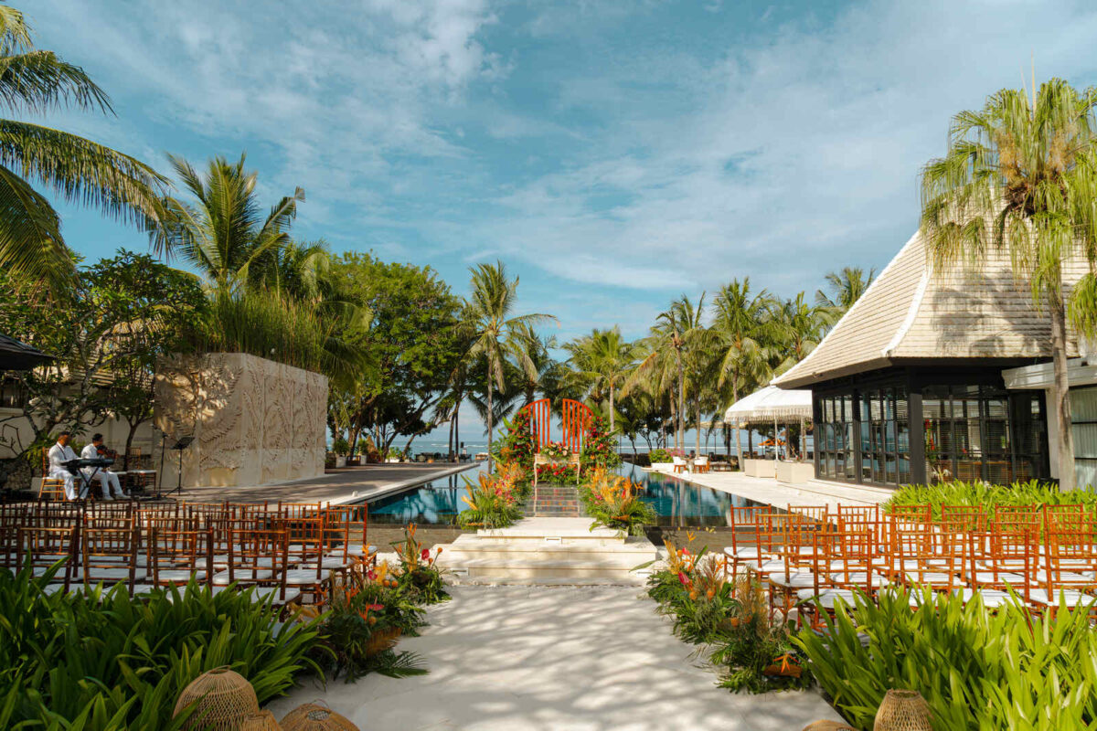 With 20 private villas set along the Nusa Dua shoreline, The Royal Santrian creates a secluded beachfront setting where ocean-facing spaces and tailored service shape intimate, high-end destination weddings.