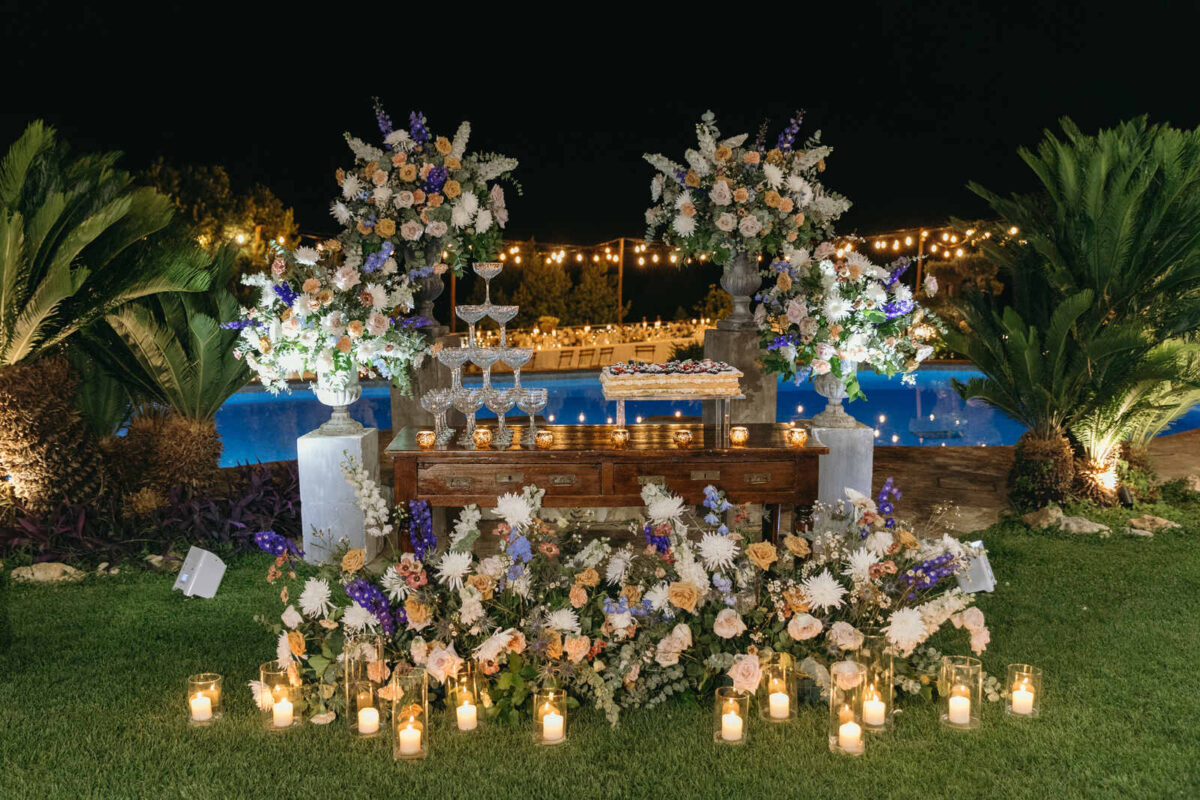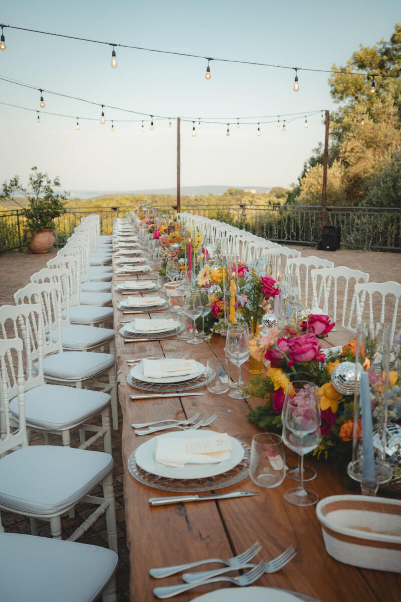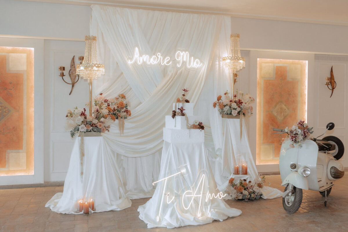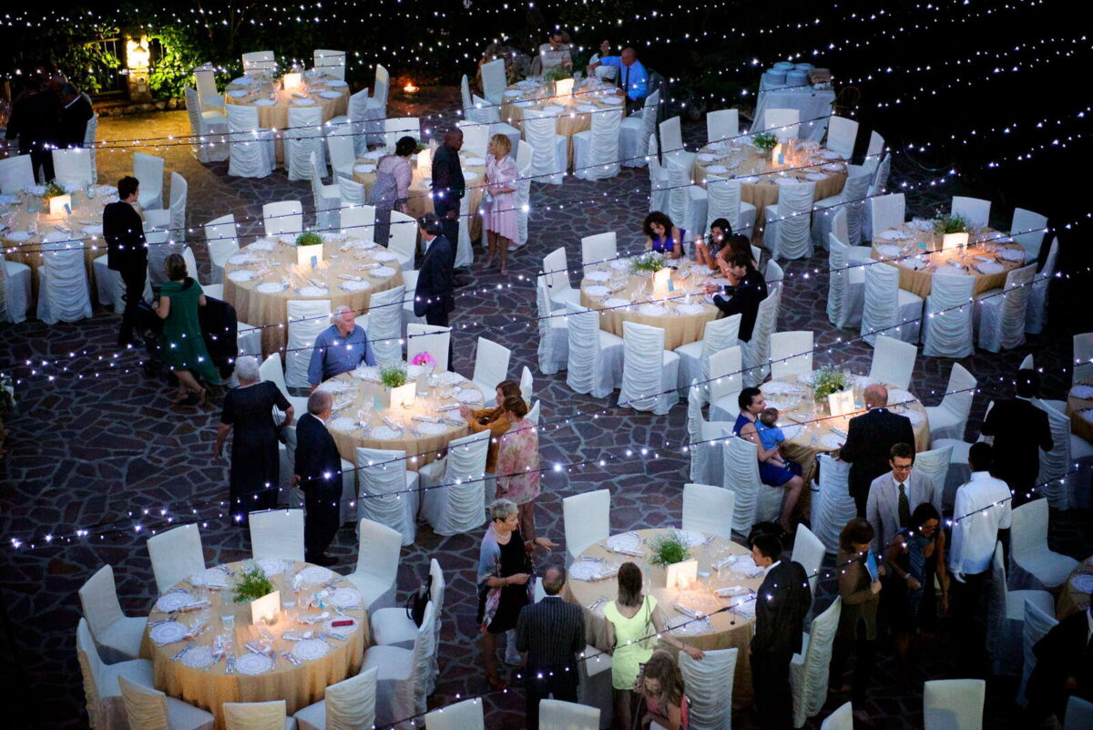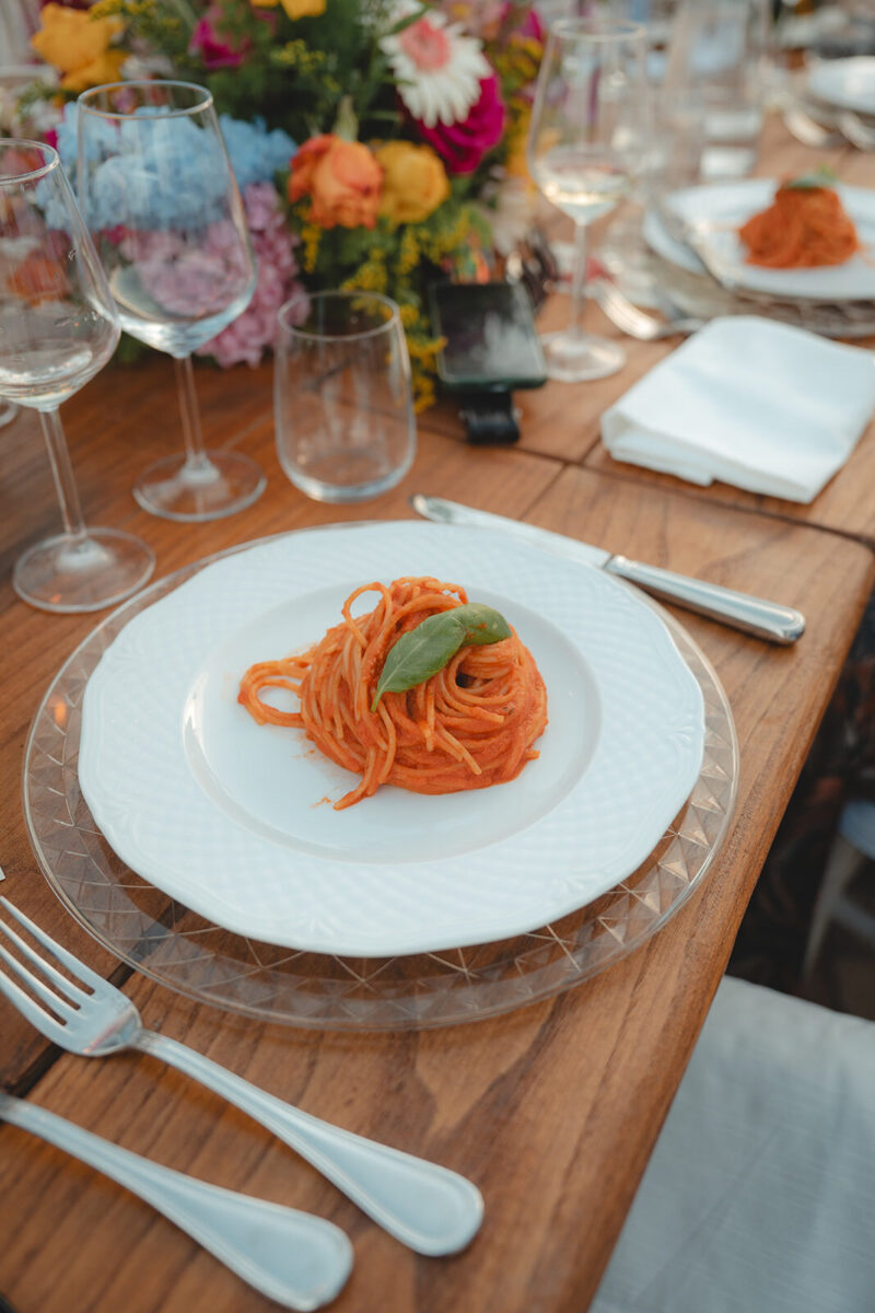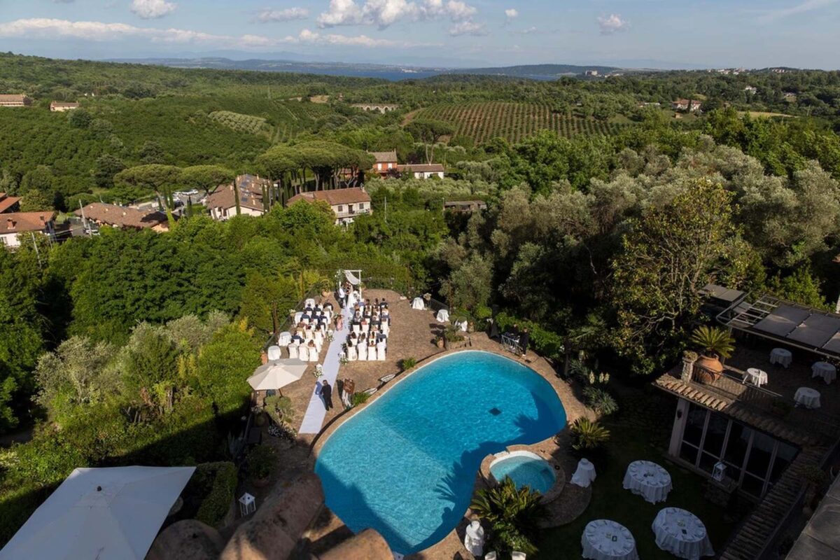 At Villa Clodia, the experience begins the moment guests arrive, stepping into the villa and taking in the quiet of the surrounding countryside. Time is given to settle in before gathering for a terrace ceremony, where the views stretch out towards Lake Bracciano. From there, the celebration shifts into an aperitif as the light softens, with conversations flowing across the gardens and open spaces. As evening draws in, everyone moves indoors or onto the terrace for dinner, where the atmosphere deepens and the celebration carries on in a way that feels effortless, guided by the setting rather than a fixed schedule.